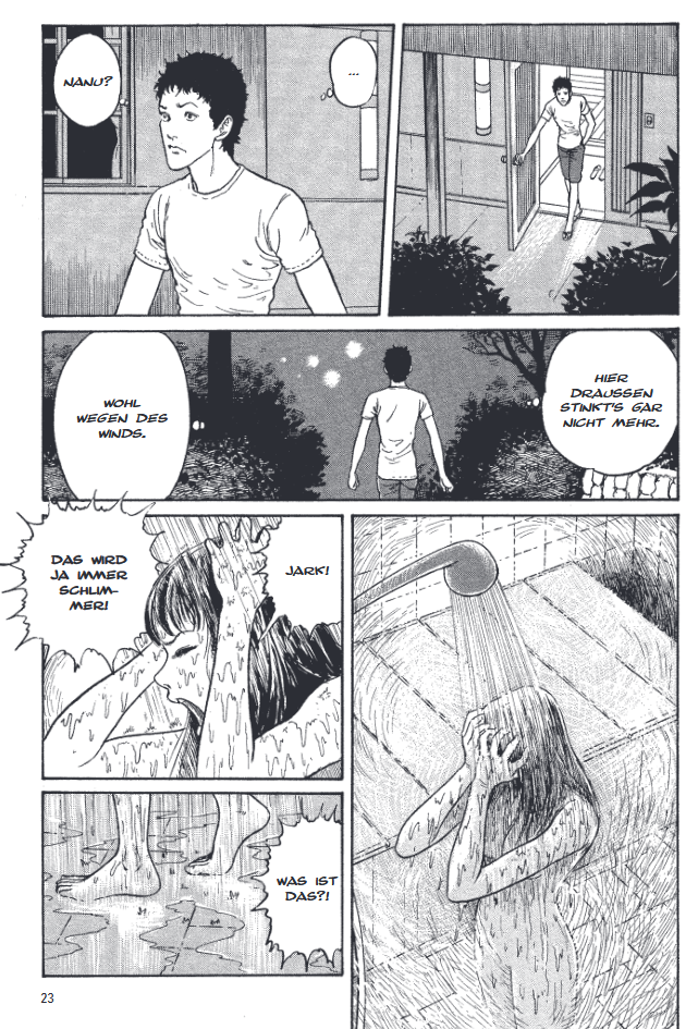 Der Comic entfaltet von den ersten Seiten an eine starke Sogwirkung, so dass man ihn nur ungern aus der Hand legt. Itos Spiel mit Urängsten, garniert mit extremen Fischgestank, und verwesenden aquatischen Wirbeltieren, erzeugt in der Tat eine gewisse Art von unbehaglichem Grusel und rechtfertigt das empfohlene Lesealter ab 16 Jahren.